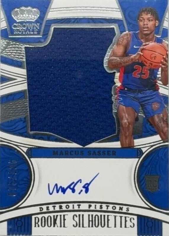 The Marcus Sasser 2023 Crown Royale #113 Rookie Silhouettes (/125) card in Raw condition has not changed in price in the last 30 days and was last sold for $6.50 .