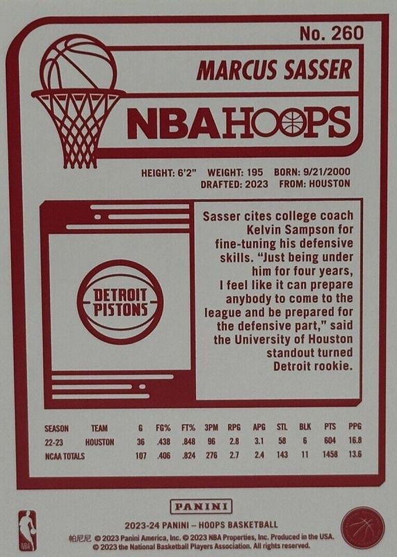 Recent Sales of Marcus Sasser 2023 Hoops #260 Red Back Rookie Raw
