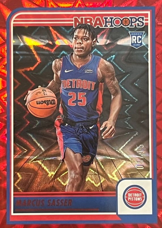This card is 1 of 34 Marcus Sasser's card variations in the 2023 Hoops set being tracked by Sports Card Investor, including Base, Blue, Hyper Blue, Impulse, and Neon Green.
