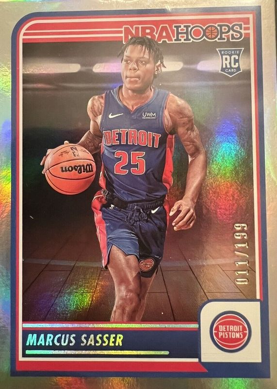 2023-24 Panini NBA Hoops Marcus Sasser Silver Holo Rookie RC 82/199 Pistons #260