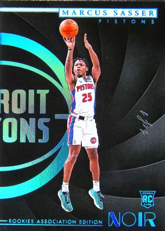 This card is 1 of 21 Marcus Sasser's card variations in the 2023 Noir set being tracked by Sports Card Investor, including Rookies Association Edition /99, Rookies Icon Edition /99, Rookies Metal Frame City Edition /25, Rookies Association Edition - Holo Silver /49, and Rookies Icon Edition - Holo Silver /49.