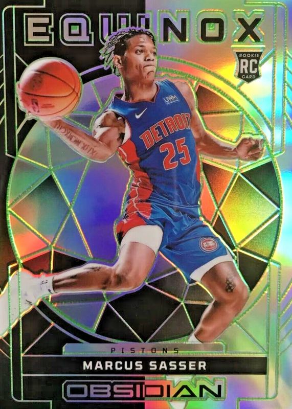 The Marcus Sasser 2023 Obsidian #3 Equinox - Electric Etch Green /25 Rookie card in Raw condition has not changed in price in the last 30 days and was last sold for $3.25 .