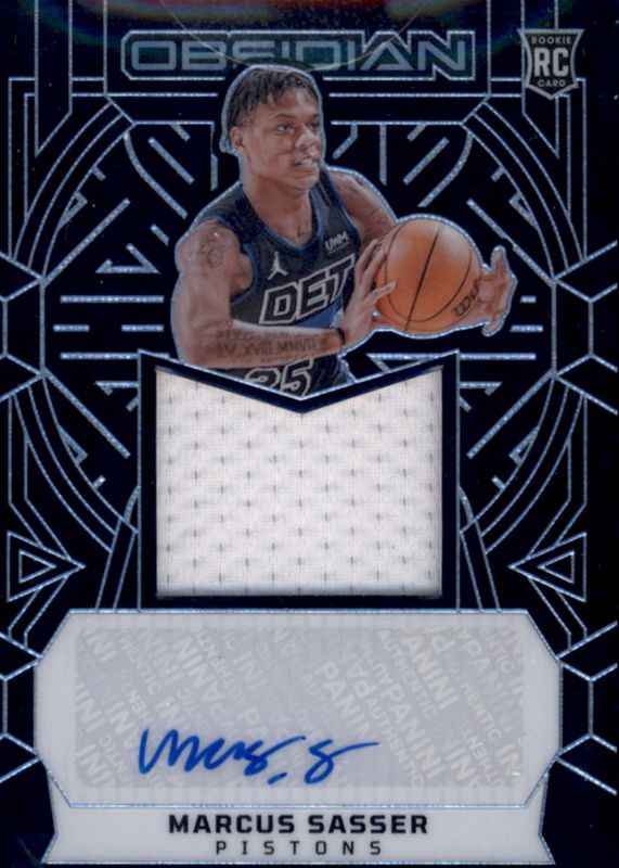 The Marcus Sasser 2023 Obsidian #203 Rookie Jersey Autographs /99 card in Raw condition has not changed in price in the last 30 days and was last sold for $9.00 .
