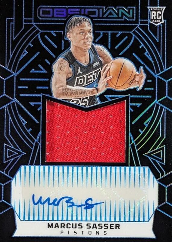 The Marcus Sasser 2023 Obsidian #203 Rookie Jersey Autographs - Electric Etch Blue FOTL /27 card in Raw condition has not changed in price in the last 30 days and was last sold for $6.50 .