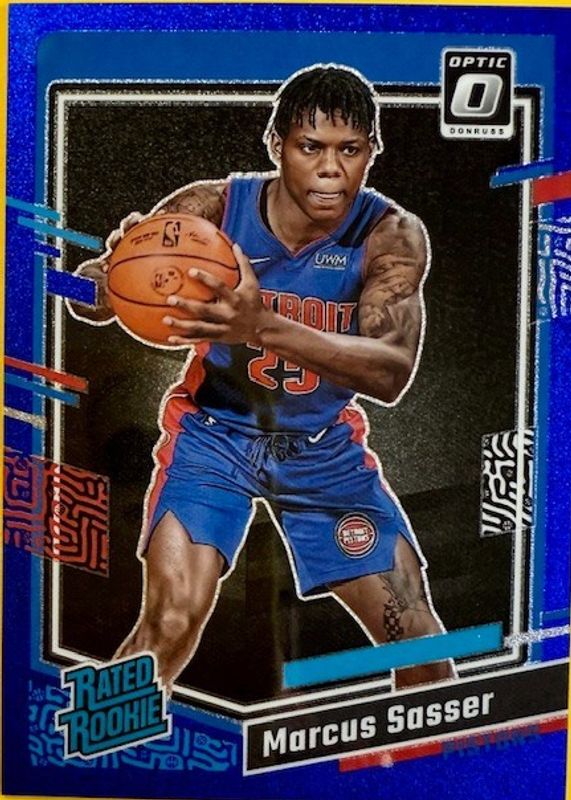 The Marcus Sasser 2023 Optic #242 Blue Glitter /15 Rookie card in Raw condition has not changed in price in the last 30 days and was last sold for $5.50 .