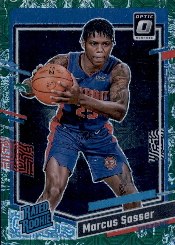 The Marcus Sasser 2023 Optic #242 Choice Dragon /(SSP) Rookie card in Raw condition has not changed in price in the last 30 days and was last sold for $1.99 .