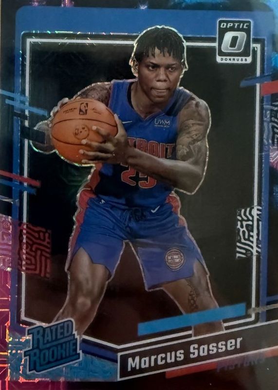 This card is 1 of 97 Marcus Sasser's card variations in the 2023 Optic set being tracked by Sports Card Investor, including Base, Blue Velocity, Checkerboard, Choice, and Choice Red & Green.