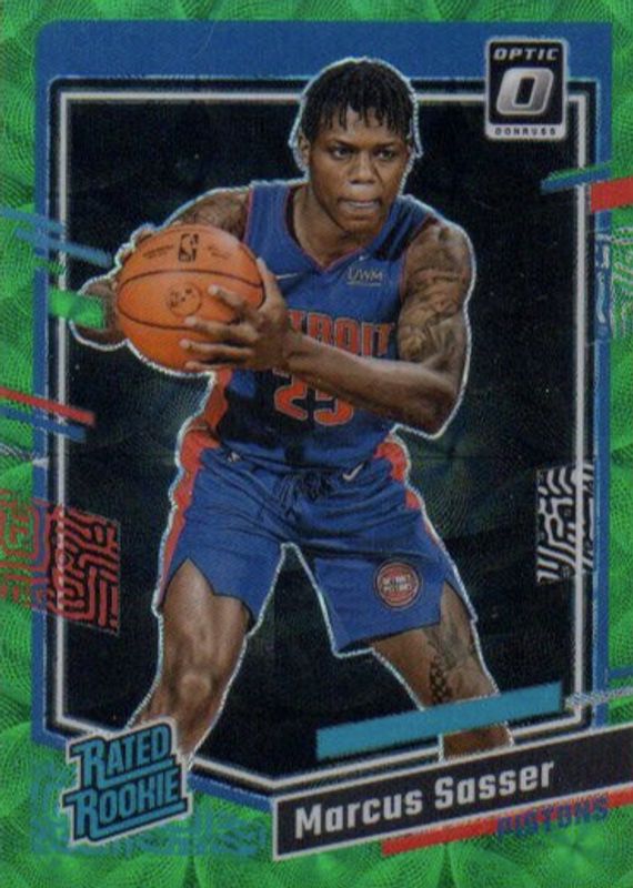 The Marcus Sasser 2023 Optic #242 International Green /65 Rookie card in Raw condition has not changed in price in the last 30 days and was last sold for $8.50 .