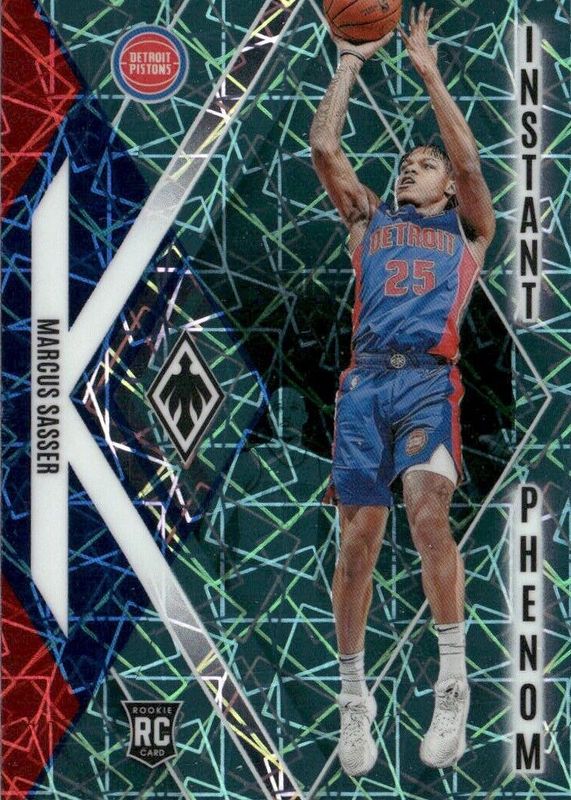 The Marcus Sasser 2023 Phoenix #18 Instant Phenom - Teal Lazer Rookie card in Raw condition has not changed in price in the last 30 days and was last sold for $9.99 .