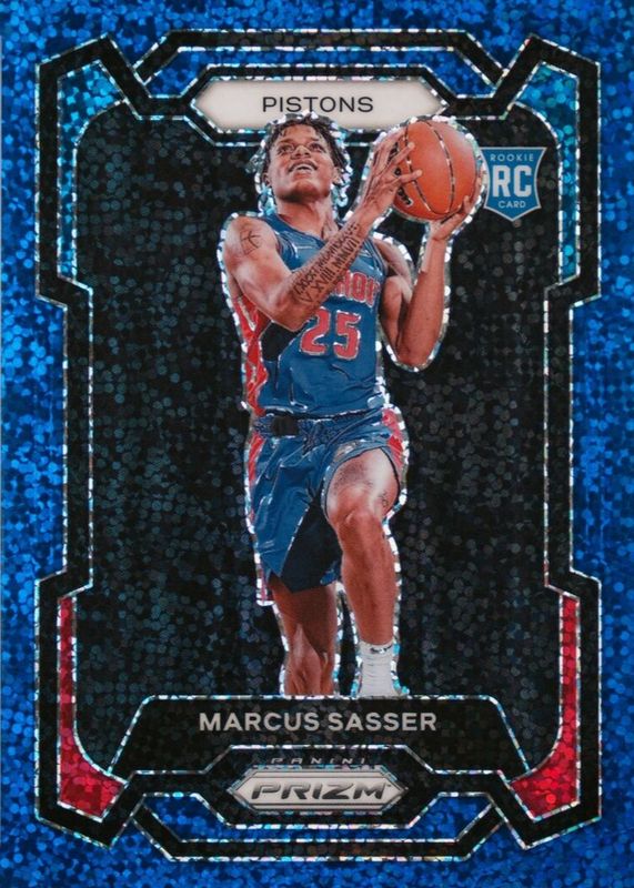 Marcus Sasser 2023-24 Panini Prizm Blue Sparkle Rookie Card /144, Pistons #174