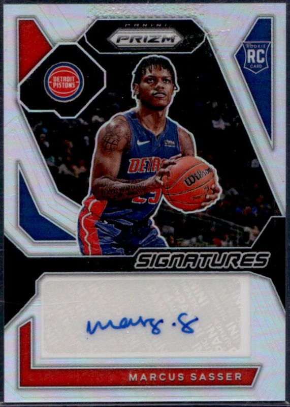The Marcus Sasser 2023 Prizm #RSI-SAS Rookie Signatures - Silver card is 1 of 100 Marcus Sasser's card variations in the 2023 Prizm set being tracked by Sports Card Investor, including Base, Blue Wave, Choice Blue Yellow Green, Fast Break, and Green.