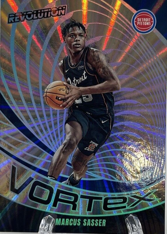 2023-24 Panini Revolution Marcus Sasser Vortex Sunburst RC #/75 #8 Pistons