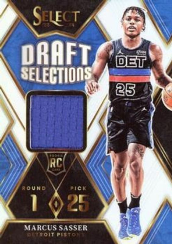 The Marcus Sasser 2023 Select #DSM-MS Draft Selections Memorabilia Rookie card is 1 of 283 Marcus Sasser's card variations in the 2023 Select set being tracked by Sports Card Investor, including Concourse, Courtside, Mezzanine, Premier Level, and Concourse Blue Cracked Ice.
