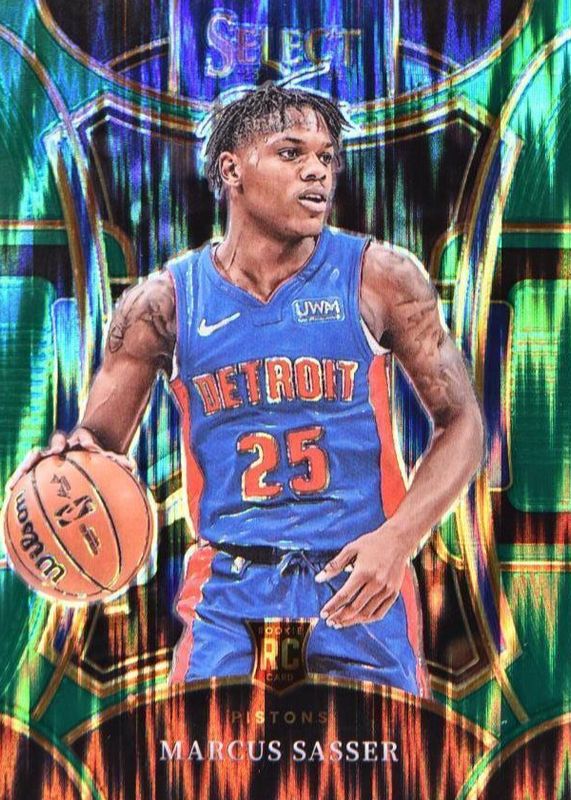 The Marcus Sasser 2023 Select #303 Mezzanine Green Shock Rookie card in Raw condition has not changed in price in the last 30 days and was last sold for $2.25 .