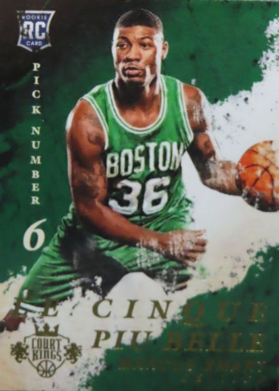 The Marcus Smart 2014 Court Kings #3 Le Cinque Piu Belle /(SSP) (/36) Rookie card in Raw condition has not changed in price in the last 30 days and was last sold for $55.55 .