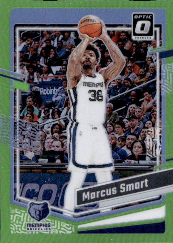 The Marcus Smart 2023 Optic #152 Lime Green /149 card is 1 of 58 Marcus Smart's card variations in the 2023 Optic set being tracked by Sports Card Investor, including Base, Blue Velocity, Checkerboard, Choice Red & Green, and Fast Break.