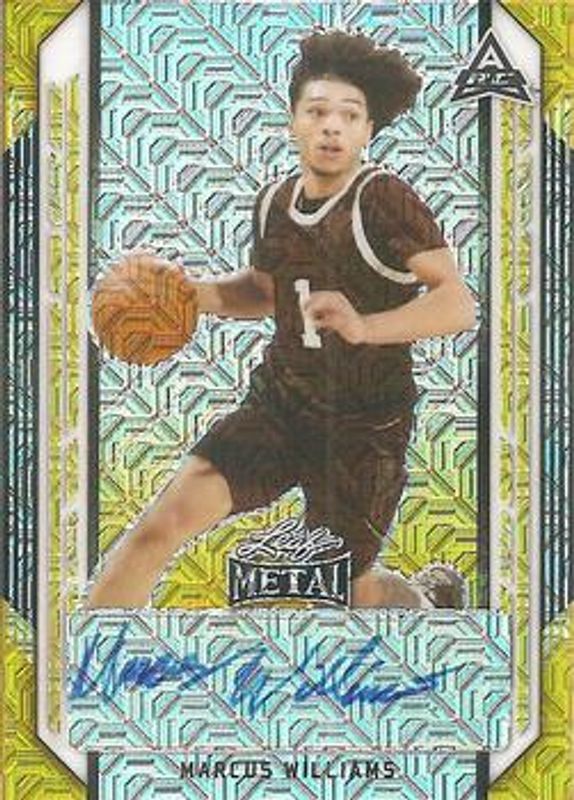 The Marcus Williams 2021 Leaf Metal #BA-MW1 Gold Mojo /1 card is 1 of 88 Marcus Williams' card variations in the 2021 Leaf Metal set being tracked by Sports Card Investor, including Base, Silver Crystal, Silver Mojo, Silver Wave, and Blue Rainbow /50.