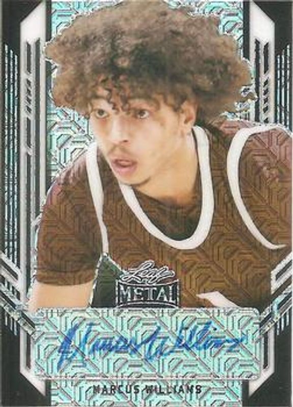 The Marcus Williams 2021 Leaf Metal #PA-MW1 Portrait Autographs - Black Mojo /5 card is 1 of 88 Marcus Williams' card variations in the 2021 Leaf Metal set being tracked by Sports Card Investor, including Base, Silver Crystal, Silver Mojo, Silver Wave, and Blue Rainbow /50.