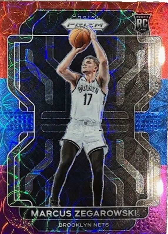The Marcus Zegarowski 2021 Prizm #300 Choice Red Blue & Purple /15 Rookie card in Raw condition has not changed in price in the last 30 days and was last sold for $12.50 .