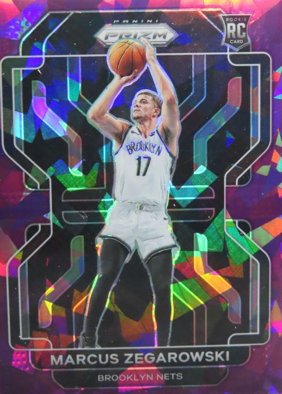 The Marcus Zegarowski 2021 Prizm #300 Purple Ice /149 Rookie card in Raw condition has not changed in price in the last 30 days and was last sold for $0.99 .