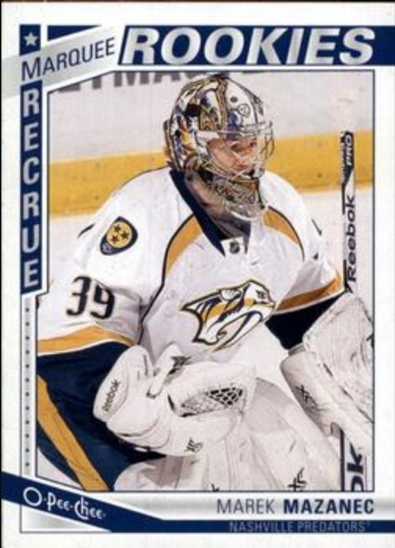 The Marek Mazanec 2013 Upper Deck #631 2013 O-Pee-Chee Update Rookie card is 1 of 12 Marek Mazanec's card variations in the 2013 Upper Deck set being tracked by Sports Card Investor, including Young Guns Base, Young Guns - Acetate, Young Guns - Jumbo, Young Guns - UD Exclusives /100, and Young Guns - UD High Gloss /10.