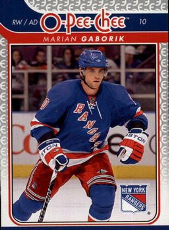 The Marian Gaborik 2009 O-Pee-Chee #674 Base card is 1 of 8 Marian Gaborik's card variations in the 2009 O-Pee-Chee set being tracked by Sports Card Investor, including #294 Base, #294 Rainbow, #674 Rainbow, #294 Retro, and #294 Retro Blank Back.