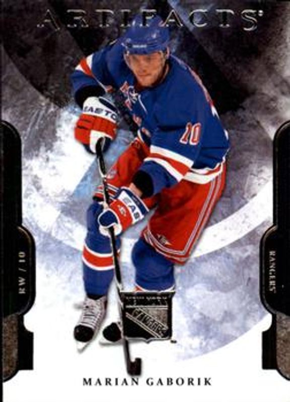 The Marian Gaborik 2011 Upper Deck Artifacts #10 Base /699 card is 1 of 24 Marian Gaborik's card variations in the 2011 Upper Deck Artifacts set being tracked by Sports Card Investor, including #133 Base /699, #10 Emerald /99, #133 Emerald /99, #133 Spectrum /25, and #10 Spectrum /25.