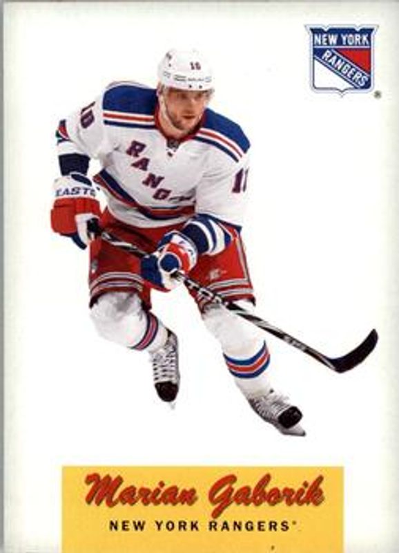 The Marian Gaborik 2012 O-Pee-Chee #1 Retro card is 1 of 7 Marian Gaborik's card variations in the 2012 O-Pee-Chee set being tracked by Sports Card Investor, including Base, Rainbow, Retro Blank Back, Black Rainbow /100, and Stickers.