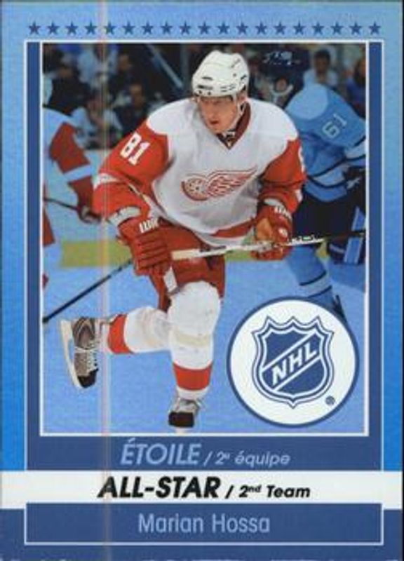 The Marian Hossa 2009 O-Pee-Chee #AST11 All Star Teams card is 1 of 8 Marian Hossa's card variations in the 2009 O-Pee-Chee set being tracked by Sports Card Investor, including #664 Base, #7 Base, #664 Rainbow, #7 Rainbow, and #7 Retro.