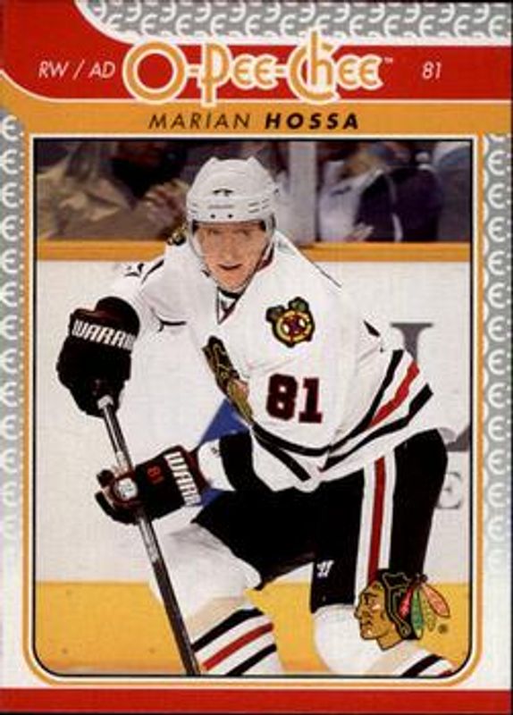The Marian Hossa 2009 O-Pee-Chee #664 Base card is 1 of 8 Marian Hossa's card variations in the 2009 O-Pee-Chee set being tracked by Sports Card Investor, including #7 Base, #664 Rainbow, #7 Rainbow, #7 Retro, and #7 Retro Blank Back.
