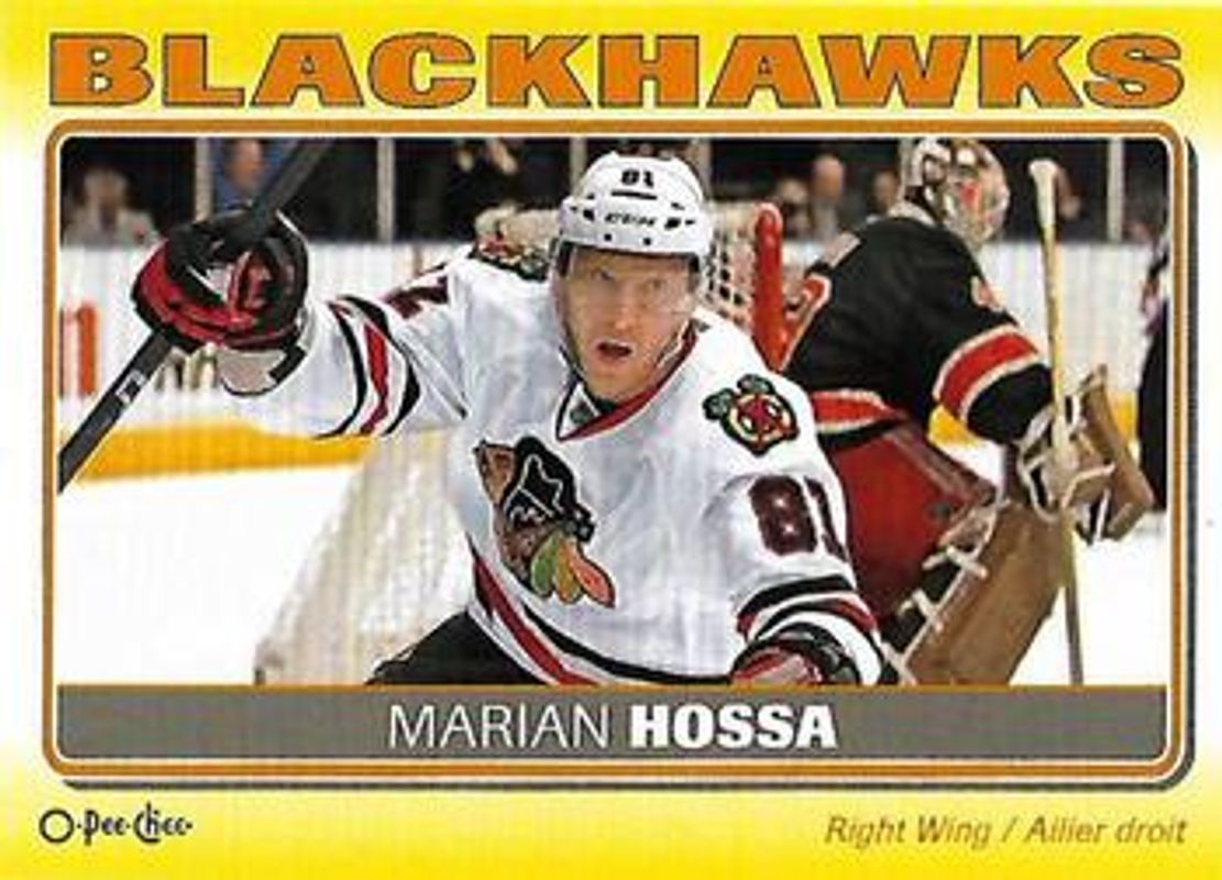 The Marian Hossa 2012 O-Pee-Chee #S-26 Stickers card is 1 of 9 Marian Hossa's card variations in the 2012 O-Pee-Chee set being tracked by Sports Card Investor, including Base, Rainbow, Retro, Retro Blank Back, and Black Rainbow /100.