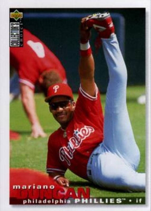 The Mariano Duncan 1995 Upper Deck Collector's Choice #361 Base card is 1 of 3 Mariano Duncan's card variations in the 1995 Upper Deck Collector's Choice set being tracked by Sports Card Investor, including Gold Signatures, and Silver Signatures.