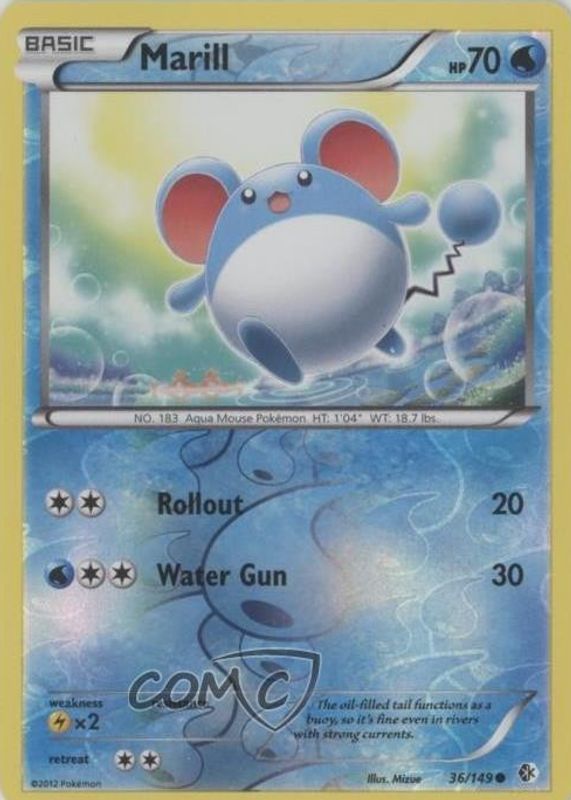 Marill 2012 Black & White: Boundaries Crossed #036/149 Reverse Holo RAW TCG (LIGHTLY PLAYED) Price Guide
