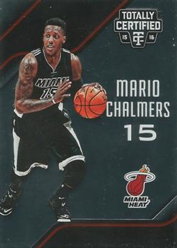 The Mario Chalmers 2015 Totally Certified #23 Base card is 1 of 14 Mario Chalmers' card variations in the 2015 Totally Certified set being tracked by Sports Card Investor, including Mirror Red /149, Mirror Blue /99, Mirror Purple /50, Mirror Camo /25, and Mirror Gold /10.