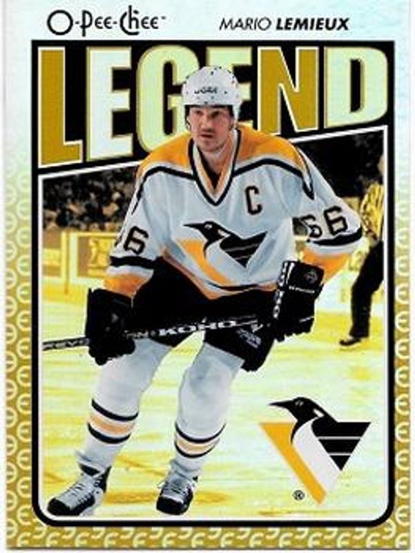 The Mario Lemieux 2009 O-Pee-Chee #597 Rainbow card is 1 of 8 Mario Lemieux's card variations in the 2009 O-Pee-Chee set being tracked by Sports Card Investor, including Base, Retro, Retro Blank Back, Retro Rainbow /100, and Buyback Autographs.