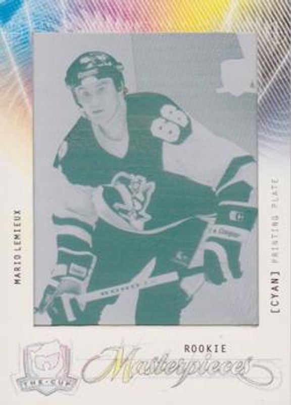 The Mario Lemieux 2009 Upper Deck The Cup #MAS-48 Printing Plates Cyan /1 card is 1 of 29 Mario Lemieux's card variations in the 2009 Upper Deck The Cup set being tracked by Sports Card Investor, including Base /199, Gold /25, Black /1, Printing Plates Black /1, and Printing Plates Magenta /1.
