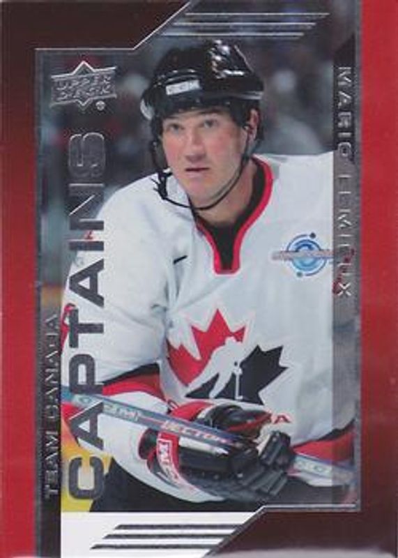 The Mario Lemieux 2013 Upper Deck Team Canada #C9 Captains card is 1 of 14 Mario Lemieux's card variations in the 2013 Upper Deck Team Canada set being tracked by Sports Card Investor, including Base, Gold Signatures, Exclusive Red /100, High Gloss Gold /10, and Black Signatures /5.
