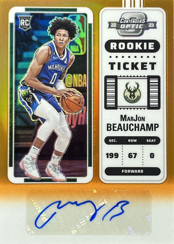 Recent Sales of MarJon Beauchamp 2022 Contenders Optic #114 Rookie Ticket Auto - Orange /25 BGS 9.5