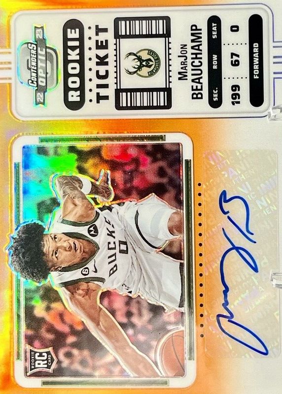 2022-23 Contenders Optic MarJon Beauchamp RC Variation Ticket Orange Auto /25