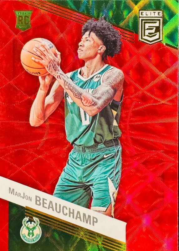 This card is 1 of 34 MarJon Beauchamp's card variations in the 2022 Elite set being tracked by Sports Card Investor, including Base, Asia Hyper Red & Green, Aspirations (/99), Orange, and Status (/1).
