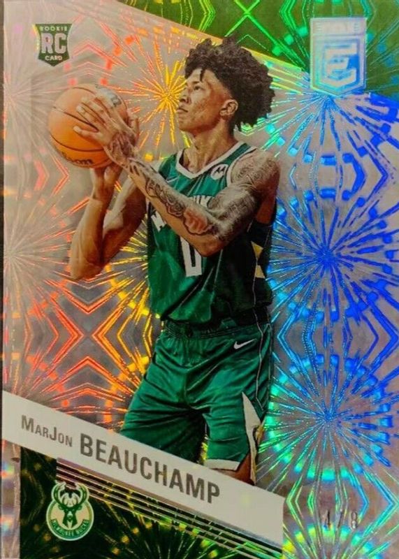 This card is 1 of 34 MarJon Beauchamp's card variations in the 2022 Elite set being tracked by Sports Card Investor, including Base, Asia Exclusive, Asia Hyper Red & Green, Aspirations (/99), and Orange.