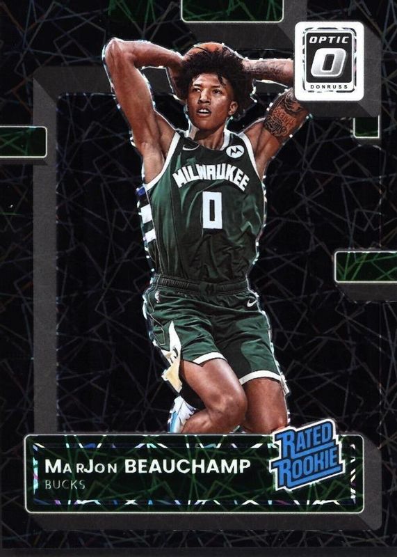 This card is 1 of 62 MarJon Beauchamp's card variations in the 2022 Optic set being tracked by Sports Card Investor, including Base, Checkerboard, Choice Red & Green, Fast Break, and Green Shock.