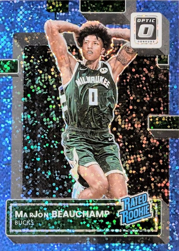 Auctions Ending Soon for MarJon Beauchamp 2022 Optic #210 Blue Sparkle /180 Rookie RAW
