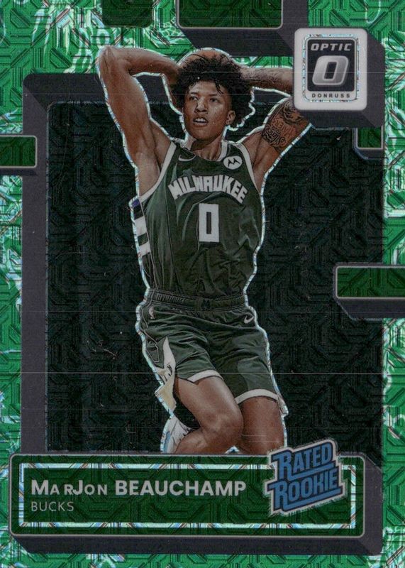 This card is 1 of 62 MarJon Beauchamp's card variations in the 2022 Optic set being tracked by Sports Card Investor, including Base, Checkerboard, Choice Red & Green, Fast Break, and Green Shock.