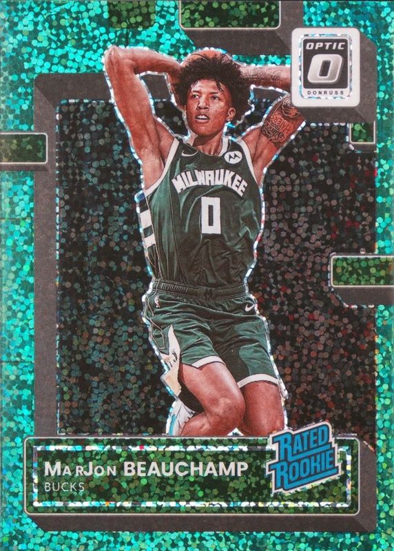 This card is 1 of 62 MarJon Beauchamp's card variations in the 2022 Optic set being tracked by Sports Card Investor, including Base, Checkerboard, Choice Red & Green, Fast Break, and Green Shock.