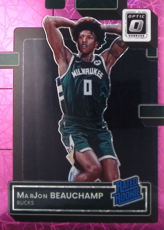 This card is 1 of 62 MarJon Beauchamp's card variations in the 2022 Optic set being tracked by Sports Card Investor, including Base, Checkerboard, Choice Red & Green, Fast Break, and Green Shock.
