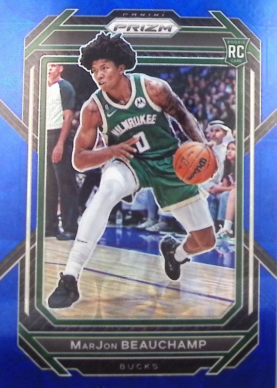 2022-23 Panini Prizm Marjon Beauchamp #268 Blue Choice Prizm RC Bucks /49