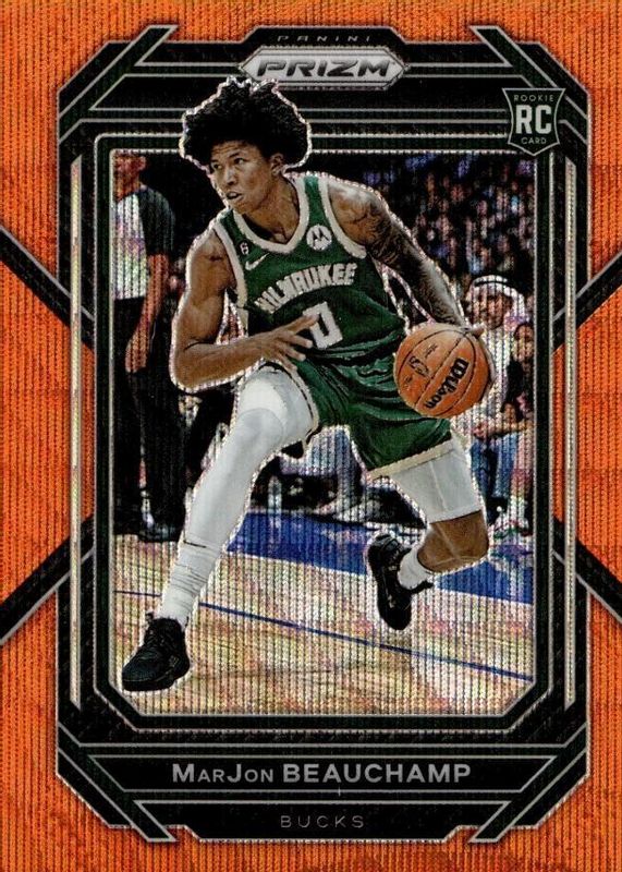 2022-23 Panini Prizm Marjon Beauchamp #268 Orange Wave Rookie RC Bucks 3/60