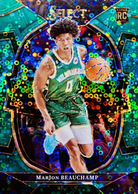 This card is 1 of 135 MarJon Beauchamp's card variations in the 2022 Select set being tracked by Sports Card Investor, including Concourse, Courtside, Premier Level, Concourse Blue Cracked Ice, and Concourse Blue Prizm.