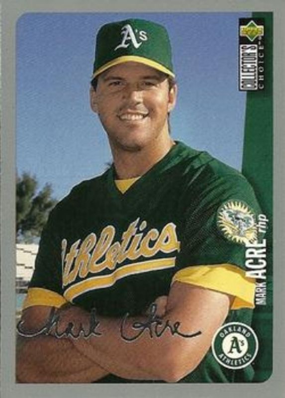 The Mark Acre 1996 Upper Deck Collector's Choice #638 Silver Signatures card is 1 of 3 Mark Acre's card variations in the 1996 Upper Deck Collector's Choice set being tracked by Sports Card Investor, including Base, and Gold Signatures.